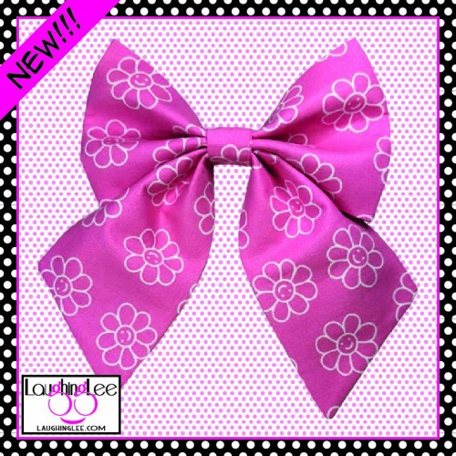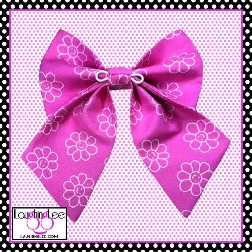 This Bow Tie is made with an adorable fabric that features white daisies with happy faces on a pink ..